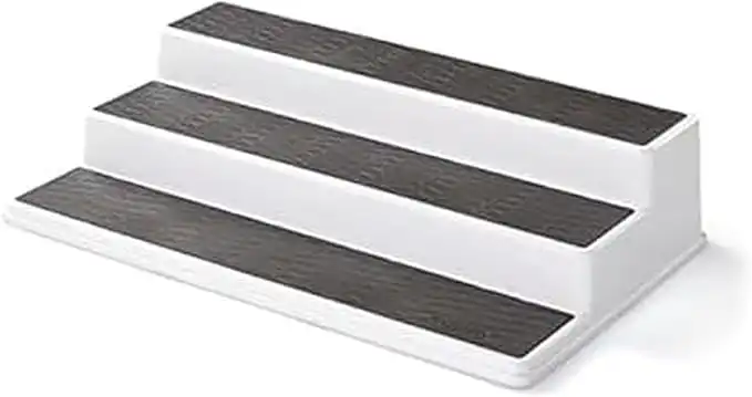 Copco 2555-0188 Non-Skid 3-Tier Spice Pantry Kitchen Cabinet Organizer, 15-Inch, White/Gray