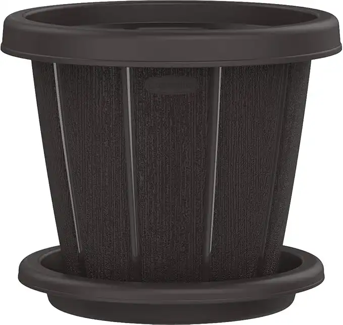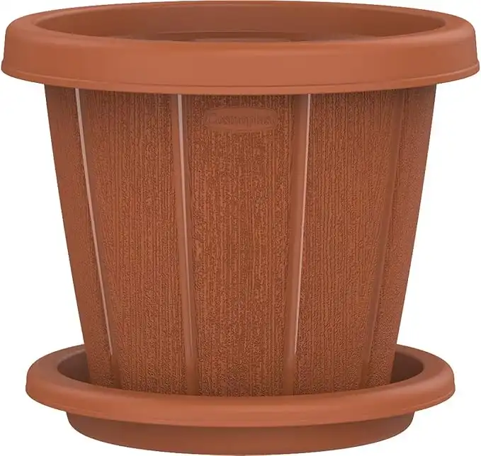 Cosmoplast Plastic Cedargrain Flower Pot Round 10” With Tray, Dark Brown, 10-Inches