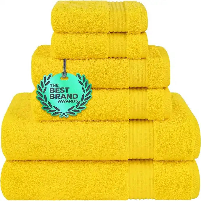 amazon.aeCotton Paradise 6 Piece Towel Set, 100% Cotton Soft Absorbent Turkish Towels for Bathroom, 2 Bath Towels 2 Hand Towels 2 Washcloths, Yellow Towel Set
