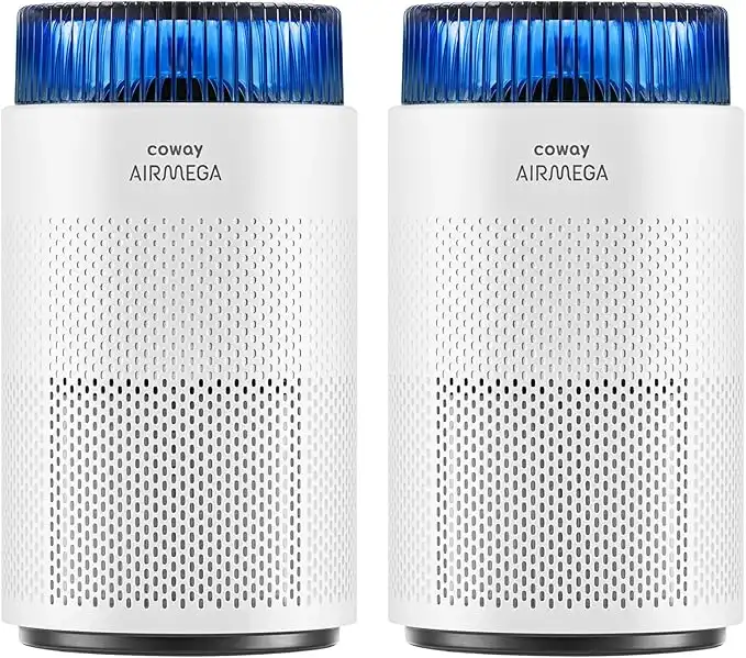 COWAY Air Purifier AM100 1+1 offer Home Bedroom 810 ft², Mood Light Air Quality Indicator, 3-in-1 Filter, GreenHepa, Removes 99.99% Pet, Dust, Odours, Allergies, Quiet 24db, White