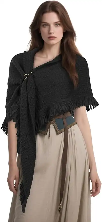 Cozy Knit Poncho Wrap Shawl with Fringe Tassel Trim Medieval Renaissance Style Women's Cape for Fall Winter Festival,Costume Boho Tribal Layered Knitwear Black, One Size — Price History & Tracker | DeserTracker