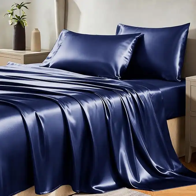 CozyLux Satin Sheets Queen Size - 4 Piece Navy Blue Bed Sheet Set with Silky Microfiber, 1 Deep Pocket Fitted Sheet, 1 Flat Sheet, and 2 Pillowcases - Smooth and Soft — Price History & Tracker | DeserTracker