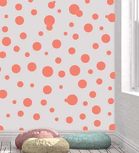Create-A-Mural Coral Color Decorations for Home Decor Dot Stickers (63) Polka Dot Wall Decals Bedroom, Teen Toddler, Baby Nursery, Birthday Gift (Coral)