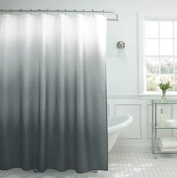 Creative Home Ideas Waffle Shower Curtain Set, 70" x 72", Dark Grey Ombre