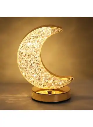 noon.comCrescent Moon Table Lamp, Stepless Dimmable Touch Lamp with 3 Colors, Rechargeable Night Light with USB Port, Ramadan Moon Light Bedside Lamp for Nightstand Desk Bedroom Living Room Home Decor