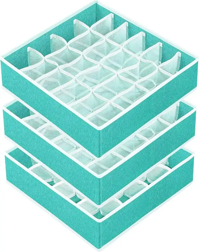 Criusia 3 Pack Sock Underwear Drawer Organizer Dividers, 64 Cell Fabric Foldable Cabinet Closet Organizers and Storage Boxes for Storing Socks, Panties, Ties (16+24+24 Cell, Turquoise) — Price History & Tracker | DeserTracker