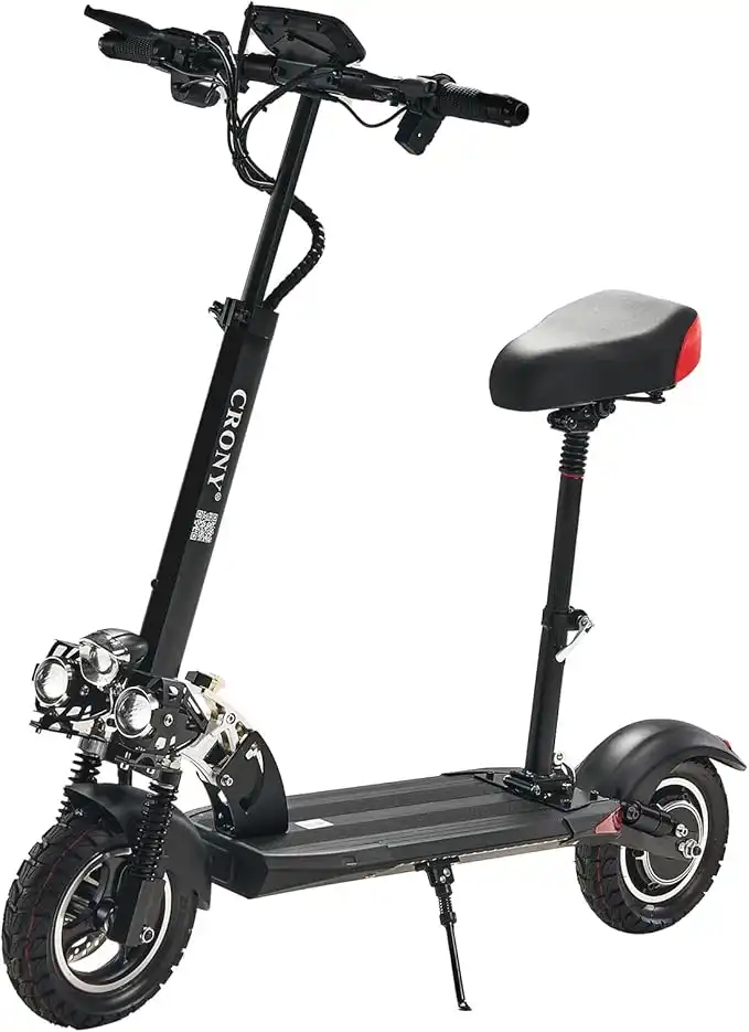 CRONY V10 Big LCD Display Electric Scooter with Seat, 1200W Motor, 40-55KM/H Speed, 120KG Max Load, Front/Rear Shock Absorber and Brake System, LED Base Light, Turn Signal, Triple LED Lights, Black