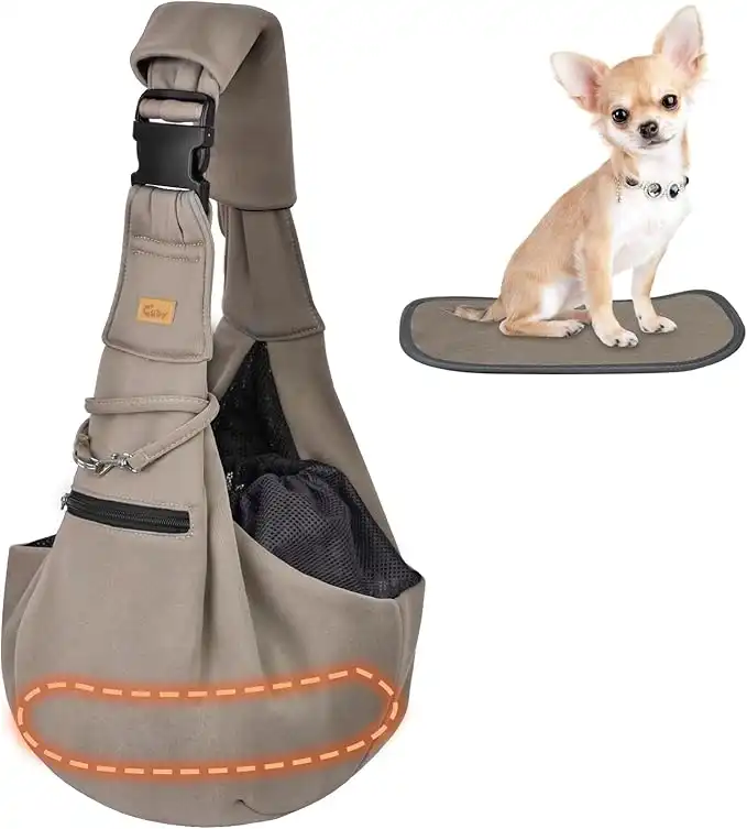 amazon.aeCUBY Puppy Carrier, Adjustable Reversible Cat Dog Sling Carrier for Small Medium Dogs Hands-free Puppy Sling Protect Shoulder Strap with Safety Belt Zipper Pocket Disassembled Bottom Mat for Walking