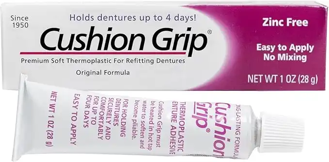 Cushion Grip Thermoplastic Denture Adhesive for Refitting and Tightening Loose Dentures [Not a Glue Adhesive, Acts Like a Soft Reliner] (1 Oz) Hold Dentures for Up to 4 Days. — Price History & Tracker | DeserTracker