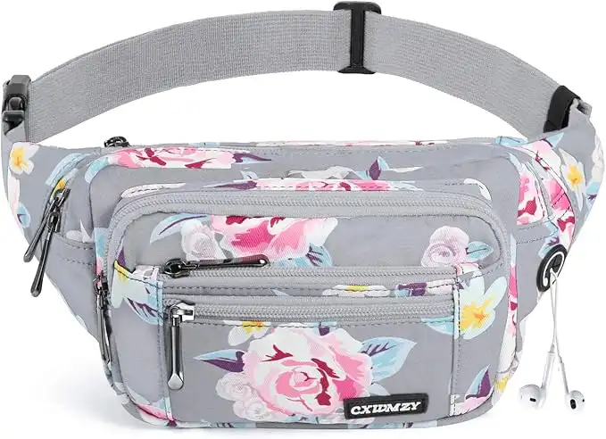 amazon.aeCXWMZY Fanny Packs For Women & Men Waist Pack Hip Bum Bag with Multi-Pockets Large Capacity Waterproof Casual Bum Bag for Disney Traveling Casual Cycling Running Hiking, Gray Flower, One Size
