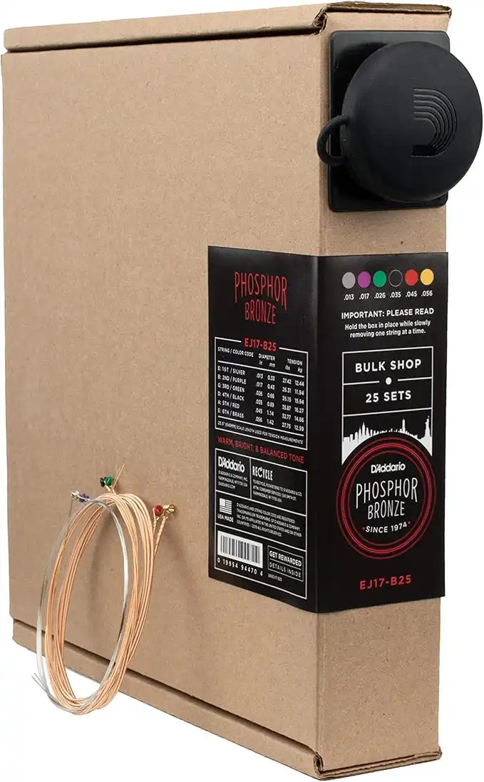 D'Addario Guitar Strings - Phosphor Bronze Acoustic Guitar Strings - EJ17-B25 - Rich, Full Tonal Spectrum - For 6 String Guitars - 13-56 Medium, 25-Set Bulk Box — Price History & Tracker | DeserTracker