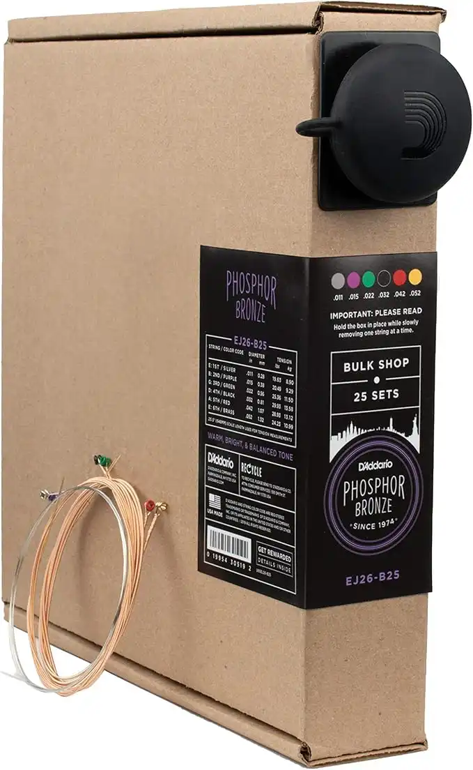 D'Addario Guitar Strings - Phosphor Bronze Acoustic Guitar Strings - EJ26-B25 - Rich, Full Tonal Spectrum - For 6 String Guitars - 11-52 Custom Light, 25-Set Bulk Box — Price History & Tracker | DeserTracker