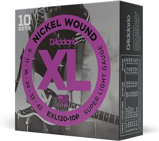 D'Addario Guitar Strings - XL Nickel Electric Guitar Strings - EXL120-10P Perfect Intonation, Consistent Feel, Reliable Durability For 6 String Guitars, Black, 09-42 Super Light, 10-Pack — Price History & Tracker | DeserTracker