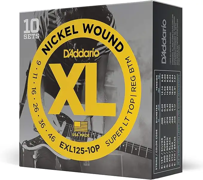 D'Addario Guitar Strings - XL Nickel Electric Guitar Strings - EXL125-10P - Perfect Intonation, Consistent Feel, Durability - For 6 String Guitars - 9-46 Super Light Top/Regular Bottom, 10-Pack — Price History & Tracker | DeserTracker