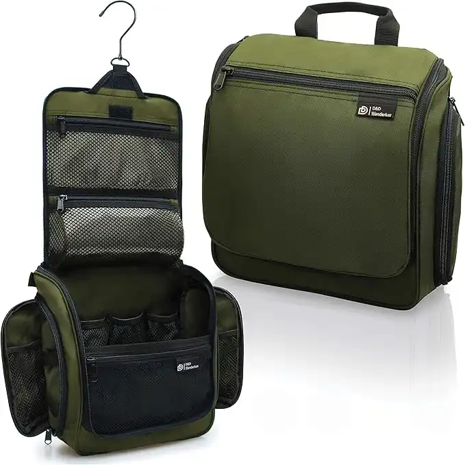 D&D Hanging Travel Toiletry Bag for Men and Women – Large Cosmetics, Makeup and Toiletries Organizer Kit with 10 Compartments, YKK Zippers, XXL Metal Swivel Hook, Water-Resistant