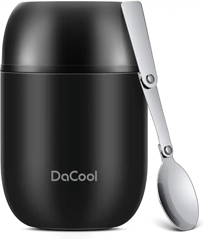 amazon.aeDaCool Insulated Lunch Container Hot Food Jar 16 oz Stainless Steel Vacuum Bento Lunch Box for Kids Adult with Spoon Leak Proof Hot Cold Food for School Office Picnic Travel Outdoors - Black