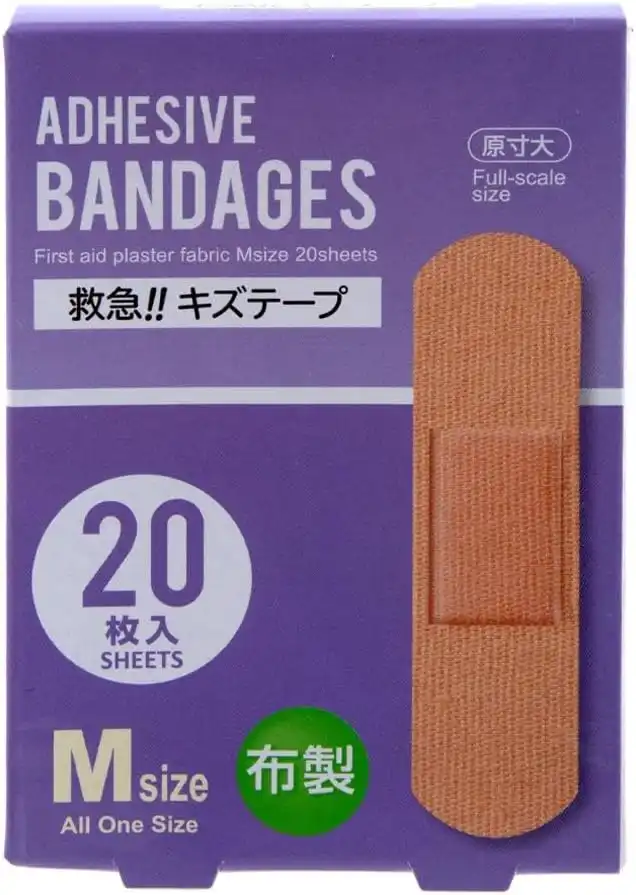DAISO Medium Size Fabric First Aid Plaster | 20 Sheets | Flexible & Durable Adhesive Bandages for Cuts & Scrapes