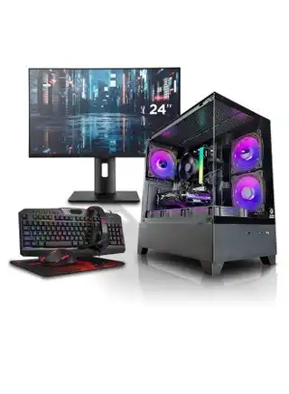 noon.comDark Nova Gaming PC Bundle - Intel Core i5-12400F | GPU Opt: AMD RX 580 or GeForce RTX 3050 / 3060 / 5050 / 5060 | 16GB DDR4 RAM-1TB NVMe SSD | Air Cooler-H610 MB-500W - 650W 80+ PSU | 24" FHD Monitor-Keyboard-Mouse-Mousepad-Headset | WiFi-Bluetooth-Windows 11 Pro | Game Sekret Desktop Computer | 1 Year Warranty black