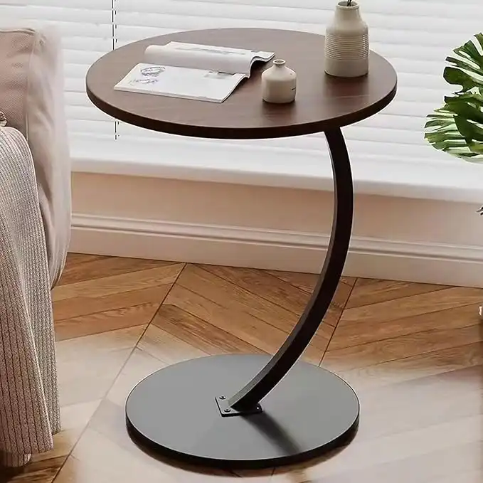DAYONG Side Table, C-shaped Coffee Table, Sofa End Table, Space-Saving Nightstand Bedside Table for Balcony, Office, Living Room, Bedroom, Small Spaces (Walnut + Black)