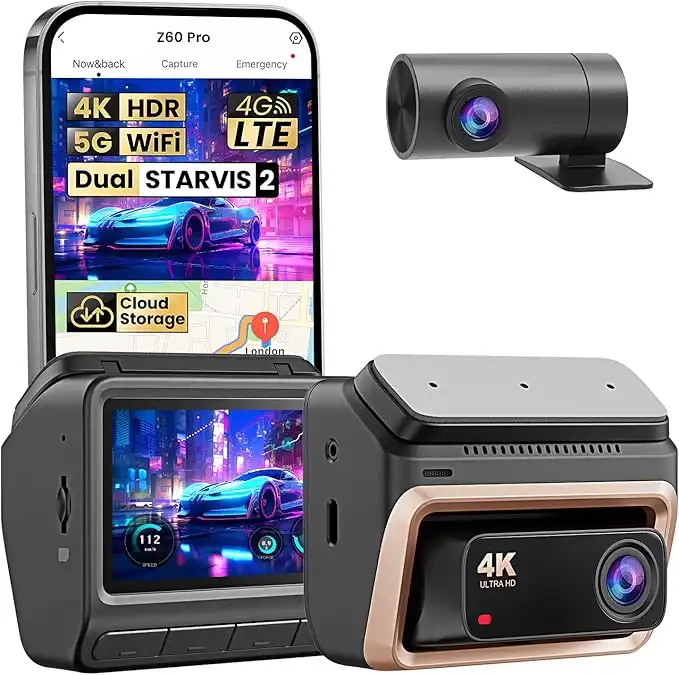 amazon.aeDDPAI 4K Dash Cam for Cars Front and Rear, 2160P+1080P Dual STARVIS 2 IMX678 IMX662 Dashcam, Dual HDR, 32G eMMC, 3K/60FPS, 4G LTE Support, 5G WiFi GPS, 3" IPS, Night Vision, 24H Parking Mode, Z60 Pro