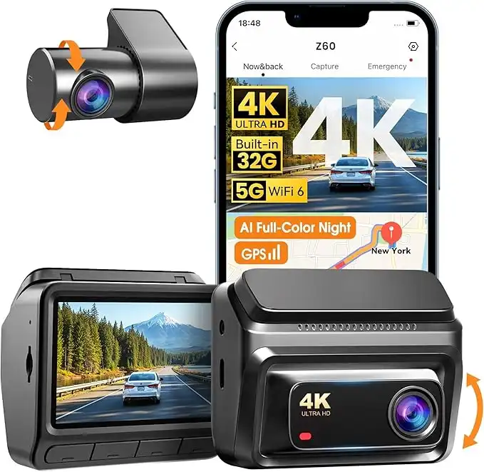 amazon.aeDDPAI Z60 4G Dash Cam for Cars Front and Rear, 4K+1080P Remote Monitor Dashcam, Cloud Storage, up to 15MB/s 5GHz WiFi6 Car Dash Camera, 3" IPS with 32G eMMC GPS Night Vision 24H Parking Monitor