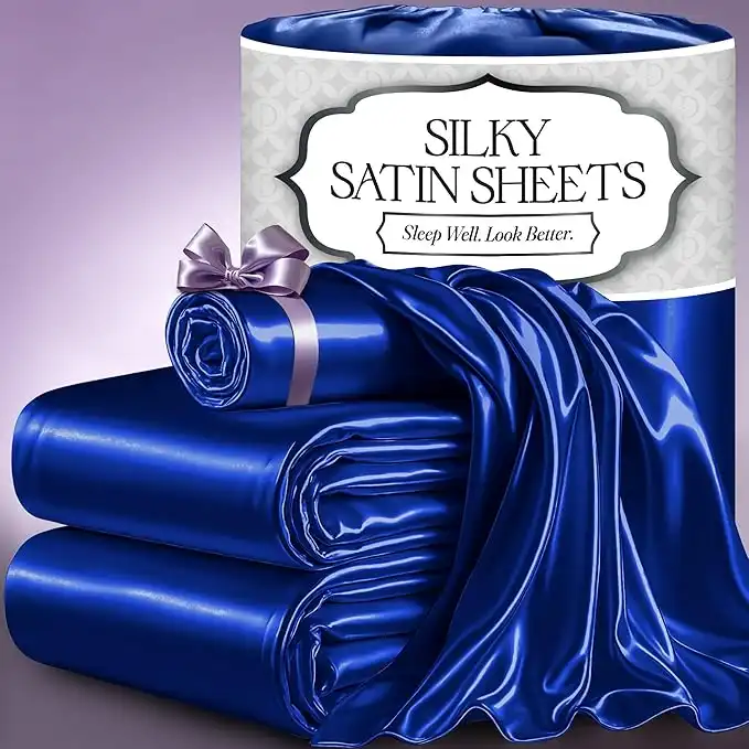 DECOLURE Satin Sheets Twin Size Set 3 Pcs - Silky & Luxuriously Soft Satin Bed Sheets w/ 15 inch Deep Pocket - Double Stitching, Wrinkle Free (Blue) — Price History & Tracker | DeserTracker