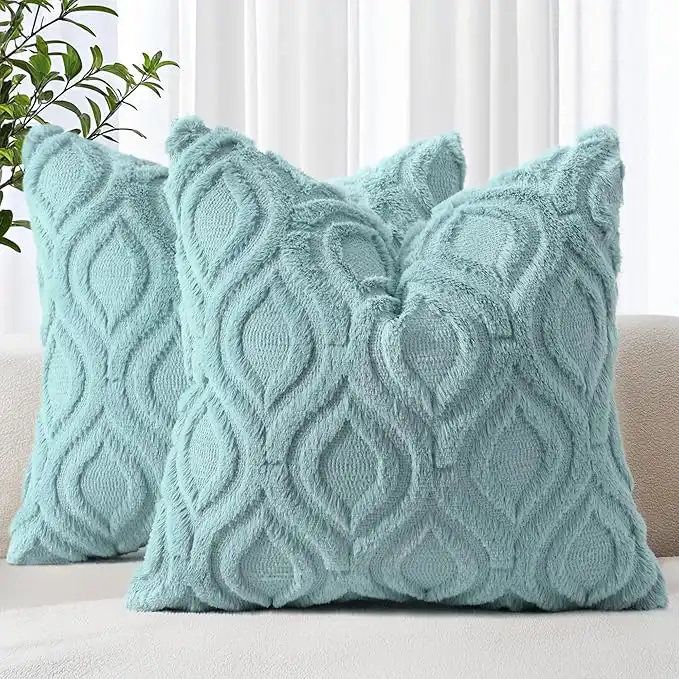 decorUhome Cozy Textured Euro Sham Throw Pillow Covers 26x26 Inch Set of 2, Soft Plush Faux Wool Aqua Accent Couch Pillow Covers for Modern Farmhouse Sofa Bed Living Room — Price History & Tracker | DeserTracker