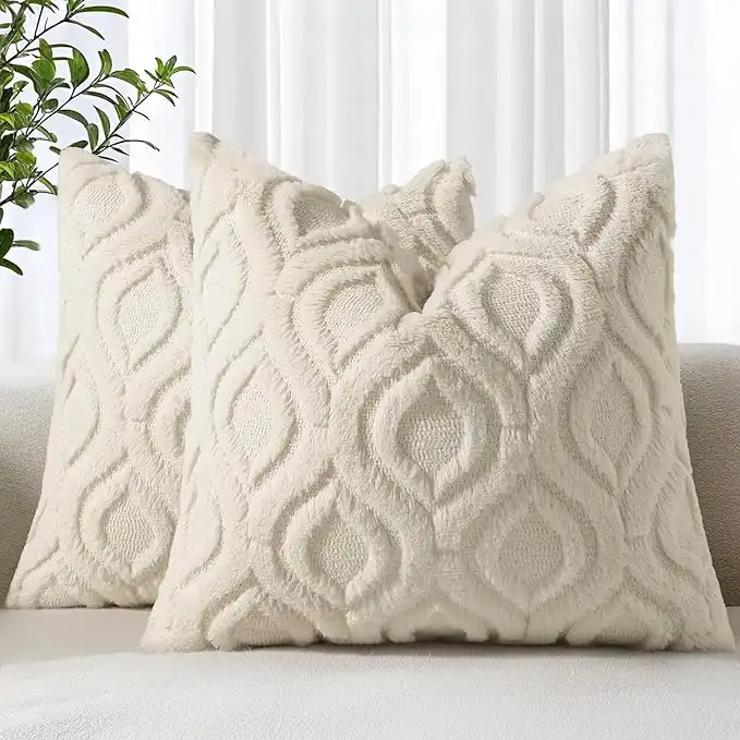 decorUhome Decorative Throw Pillow Covers 18x18, Soft Plush Faux Wool Couch Pillow Covers Set of 2, Beige — Price History & Tracker | DeserTracker