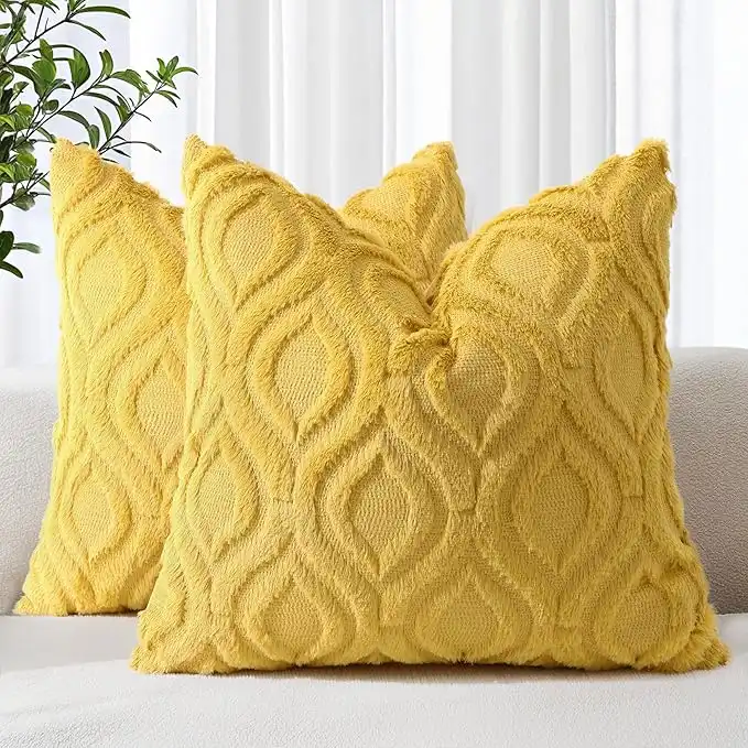 decorUhome Set of 2 Faux Fur Cushion Covers 65x65 cm, Decorative Soft Plush Fluffy Velvet Cushion Cover 26X26 Inch, Square Boho Neutral Pillow case for Sofa, Mustard Yellow — Price History & Tracker | DeserTracker