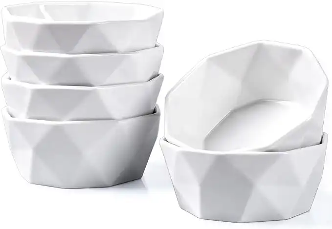 amazon.aeDELLING Ramekins 8 oz, Creme Brulee Ramekins, Porcelain Ramekins Oven Safe, Geometric Style Ramekins for Baking Souffle, Ice Cream, Snack, Charcuterie Bowls, Set of 6, White