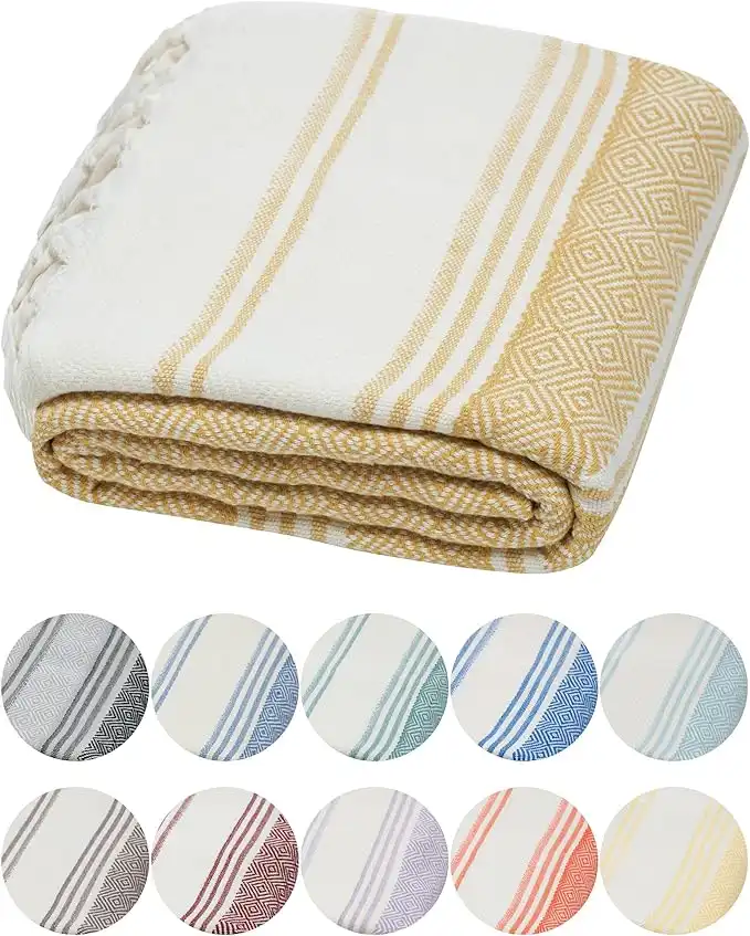 amazon.aeDEMMEX Certified 100% Organic Turkish Cotton Beach and Bath Towel - Hammam Peshtemal Towel, Blanket - Oversized, Quick Dry, Sand Free, Compact -Diamond Weave, Prewashed, Made in Turkey, 180x90 Mustard