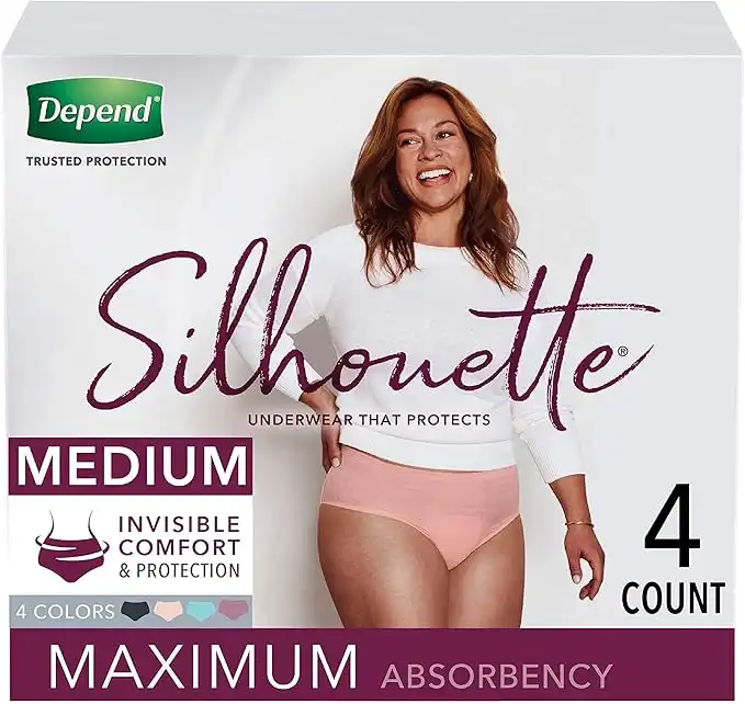Depend Silhouette Incontinence and Postpartum Underwear for Women, Maximum Absorbency, Disposable, Medium, Pink/Black/Teal/Berry, 4 Count — Price History & Tracker | DeserTracker