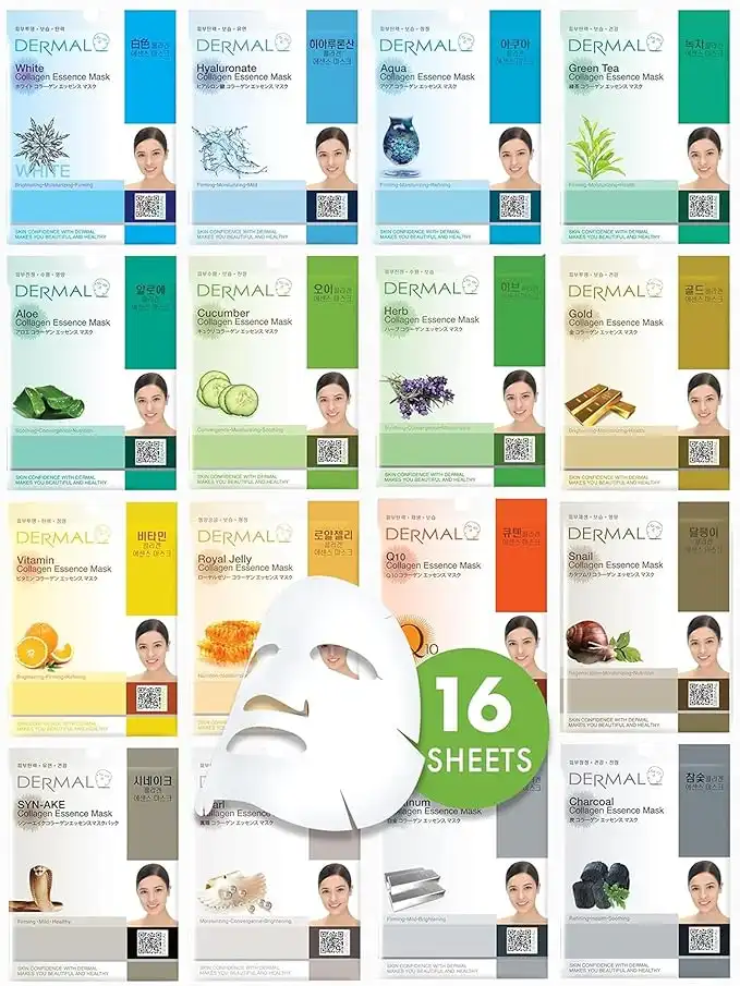 amazon.aeDermal Korea Collagen Essence Full Face Facial Mask Sheet, 16 Combo Pack