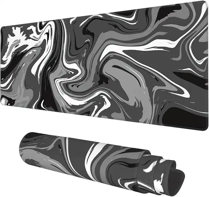 amazon.comDesk Mat, Abstract Black White Ink Liquid Waves Extended Gaming Mouse Pad Large, 31.5"x11.8" Big Mouse Pad with Non-Slip Base and Stitched Edge, Long Computer Keyboard Mouse Mat for Home Office Work