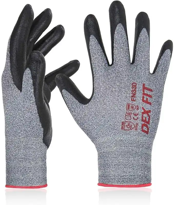 DEX FIT FN330 Work Gloves, Comfortable and Stretchy, Gripping, Durable Nitrile Foam Coating, Smart Touch, Thin and Light, Washable, 12 Pairs (FN330 Grey, XXL)