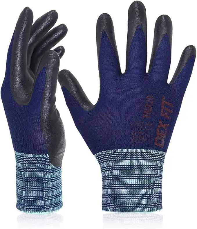 DEX FIT Premium Nylon Work Gloves FN320 - Firm Nitrile Grip, 3D-Comfort Stretchy Fit, Thin & Lightweight, Protective & Durable, Breathable, Machine Washable; Navy 9 (L) 12 Pairs — Price History & Tracker | DeserTracker