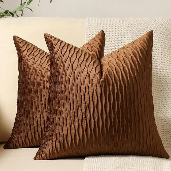 DEZENE Light Brown Throw Pillow Cases: 2 Pack 18x18 Inch Original Stripe Velvet Square Decorative Pillow Covers for Farmhouse Couch — Price History & Tracker | DeserTracker