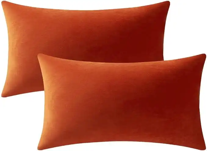 amazon.aeDEZENE Lumbar Pillow Covers 12x20 Burnt Orange: Pack of 2 Cozy Soft Velvet Rectangular Modern Luxury Decorative Throw Pillow Cases for Sofa Couch Living Room Bed Home Decor