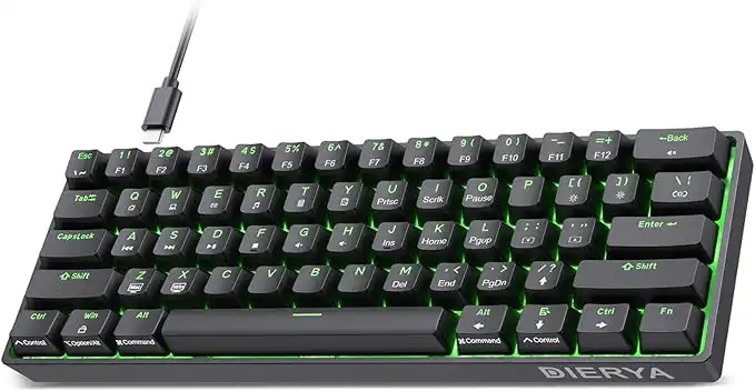 DIERYA DK61SE 60% Mechanical Gaming Keyboard, 61 Keys Anti-Ghosting, LED Backlight, Ultra-Compact Mini Wired Keyboard with Clicky Blue Switch for Windows Laptop PC Gamer Typist (Black)