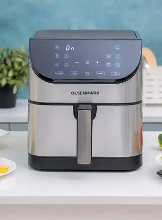 Digital Air Fryer with Non-Stick Frying Pot and Tray, Oil Free Cooking/ LED Display with Touch Screen, 10 Preset Cook Modes, 1-60 minutes Timer/ for Making Fries, Steak, Chicken, Meat, Bread/ 2 Years Warranty 6 L 1500 W OMAF2346R Black and Silver