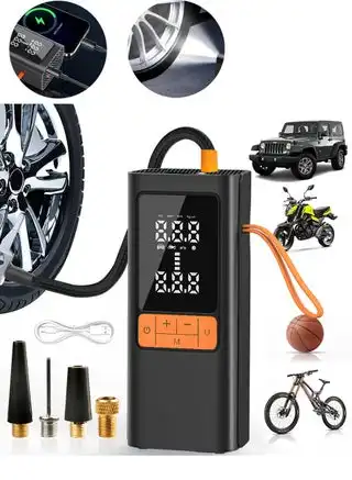 noon.comDigital Car Tire Inflator Portable Air Compressor,Digital Electric Air Pump with 6000mAh Battery Power Bank/Auto Stop/LED Light/LCD Screen/4 Nozzle/Lanyard,Cordless Cycle Tyre Inflator for Car,Motorcycle,Bicycle,Ball