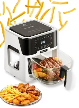 noon.comDigital Glass Air Fryer Oven,Electronic Touch Control 5.2L 1200W large capacity Hot AirFryer with 8 Presets and Clear Window,for families, dormitories and friends gatherings