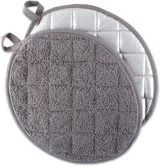 DII Basic Terry Collection Quilted 100% Cotton, Oval Potholder, Gray, 2 Piece