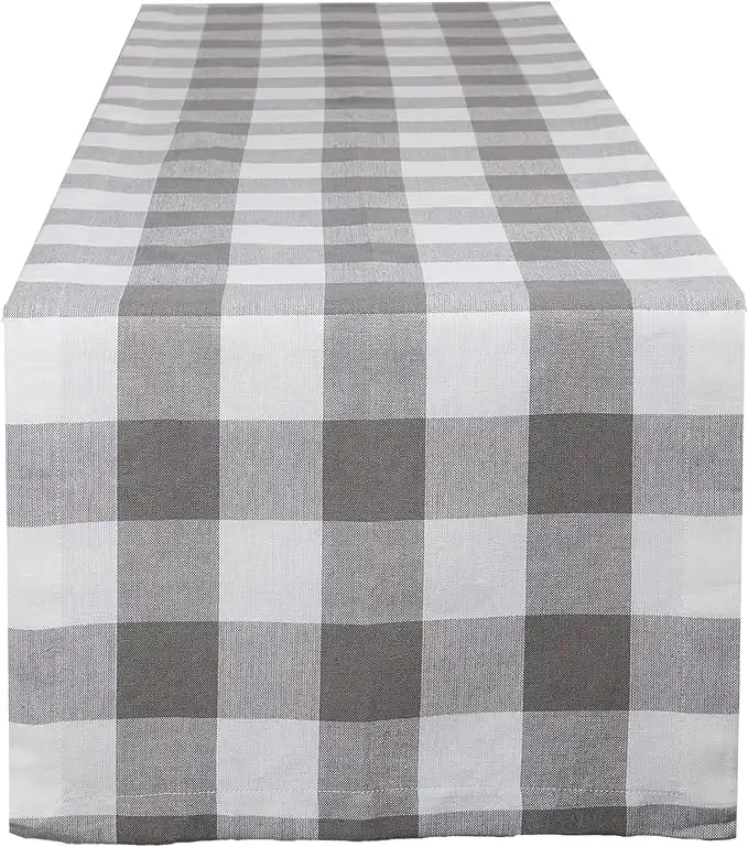 DII Buffalo Check Collection, Classic Farmhouse Table Runner, 14x108, Gray & White