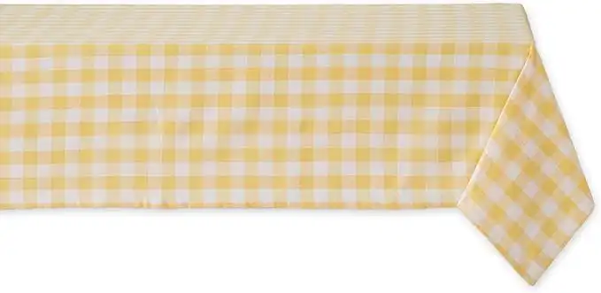 DII Checkered Tabletop Collection 100% Cotton, Machine Washable, Tablecloth, 52x52, Yellow