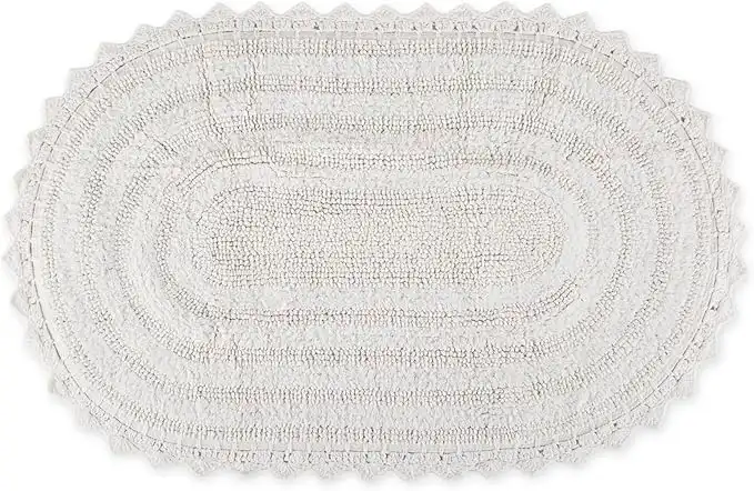 DII Crochet Collection Reversible Bath Mat, Large Oval, 21x34, White