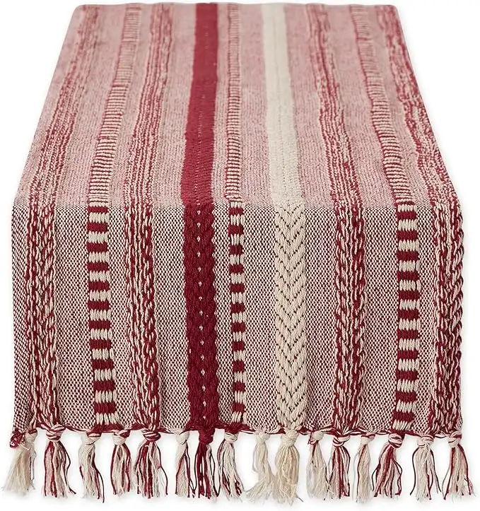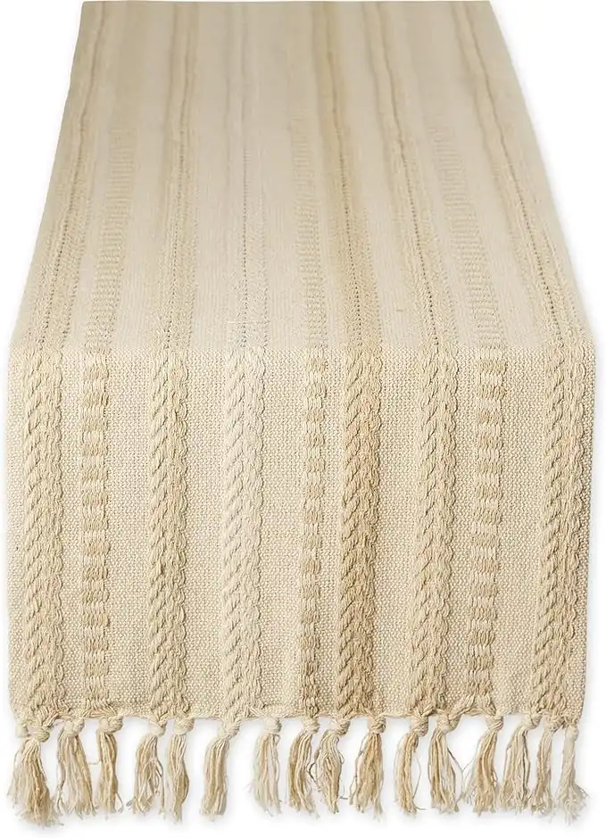 DII Farmhouse Braided Stripe Table Runner Collection, 15x72 (15x77, Fringe Included), Vintage Linen