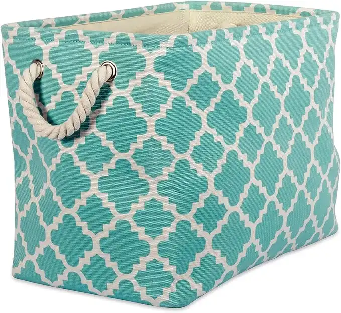 DII Polyester Container with Handles, Lattice Storage Bin, Small, Aqua