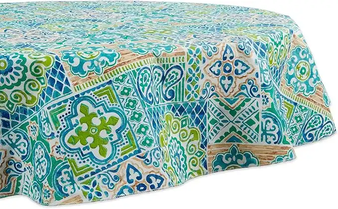 DII Spanish Tile Print Collection Vinyl Multi-Use, Flannel Backed Tablecloth, 70" Round, Spanish Tile — Price History & Tracker | DeserTracker