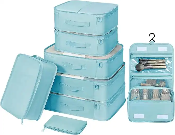 DIMJ Packing Cubes for Travel, 8 Pcs Travel Cubes for Suitcase Lightweight Travel Essential Bag with Large Toiletries Bag for Clothes Shoes Cosmetics Toiletries (Blue) — Price History & Tracker | DeserTracker